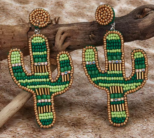 Boho Cactus Beaded Earrings